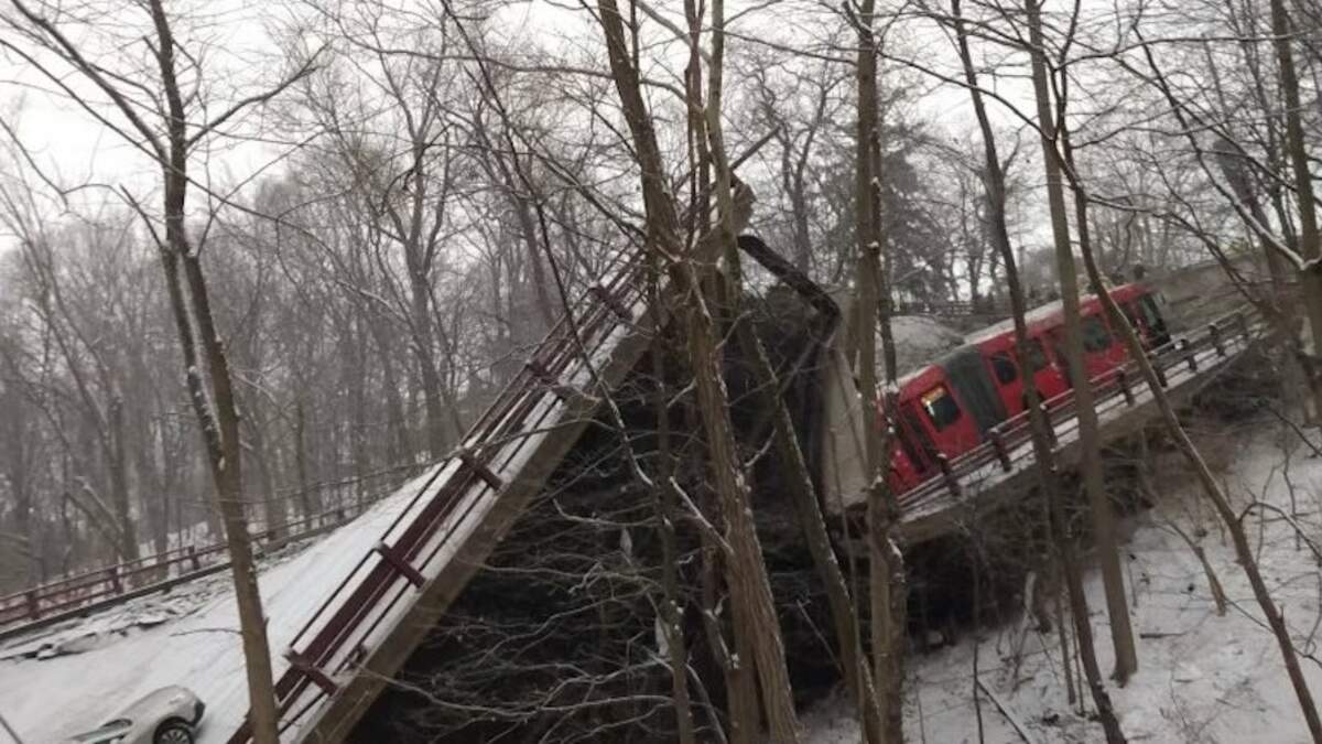 WPXI reports the incident took place near Frick Park and caused several vehicles, including a bus, to crash down into a ravine.