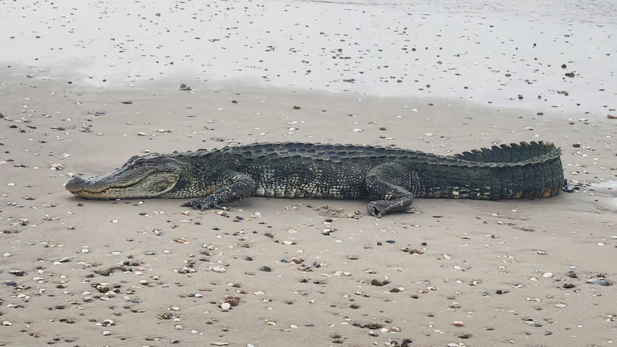 Texas beachgoers were in for a surprise when they spotted a massive alligator sunbathing on the shore!